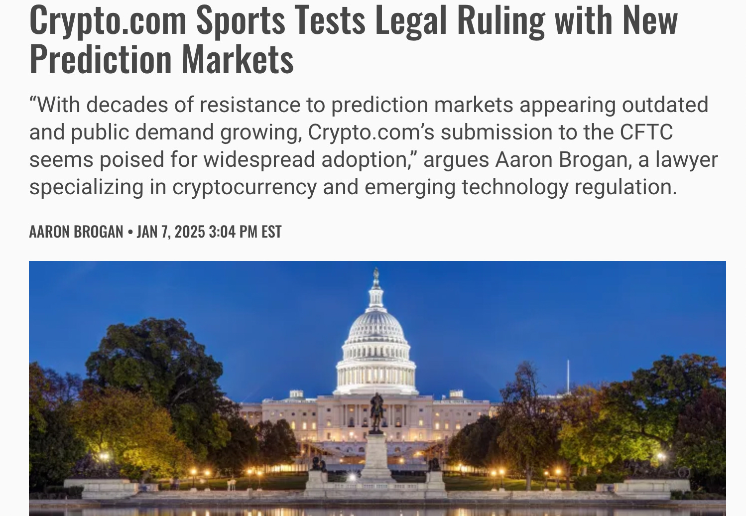 Back in December, Crypto.com was the first company to bring regulated sports-based prediction markets to the public. We’ve covered this here many times, so I won’t go through the details again, but it was a bold move that others soon followed.